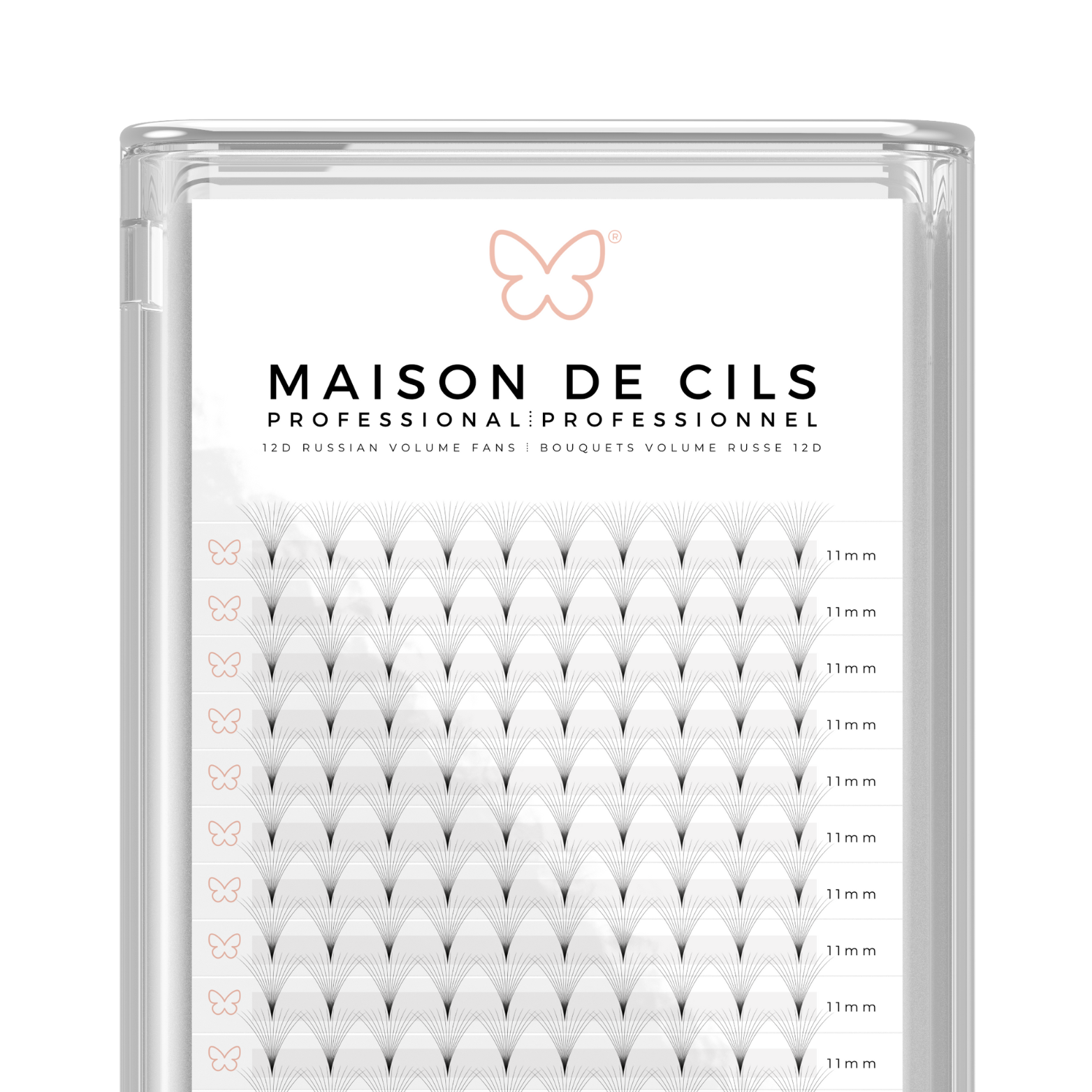 The premade 12D eyelash extension trays are expertly crafted for lash artists seeking consistent volume, speed, & precision. Designed in the Russian volume style, each tray features 12D fans with perfect symmetry and a matte finish for a soft, natural look. Available in 3D, 8D, 12D & 20D, these trays cater to a variety of lash styles, allowing for customizable volume with ease.