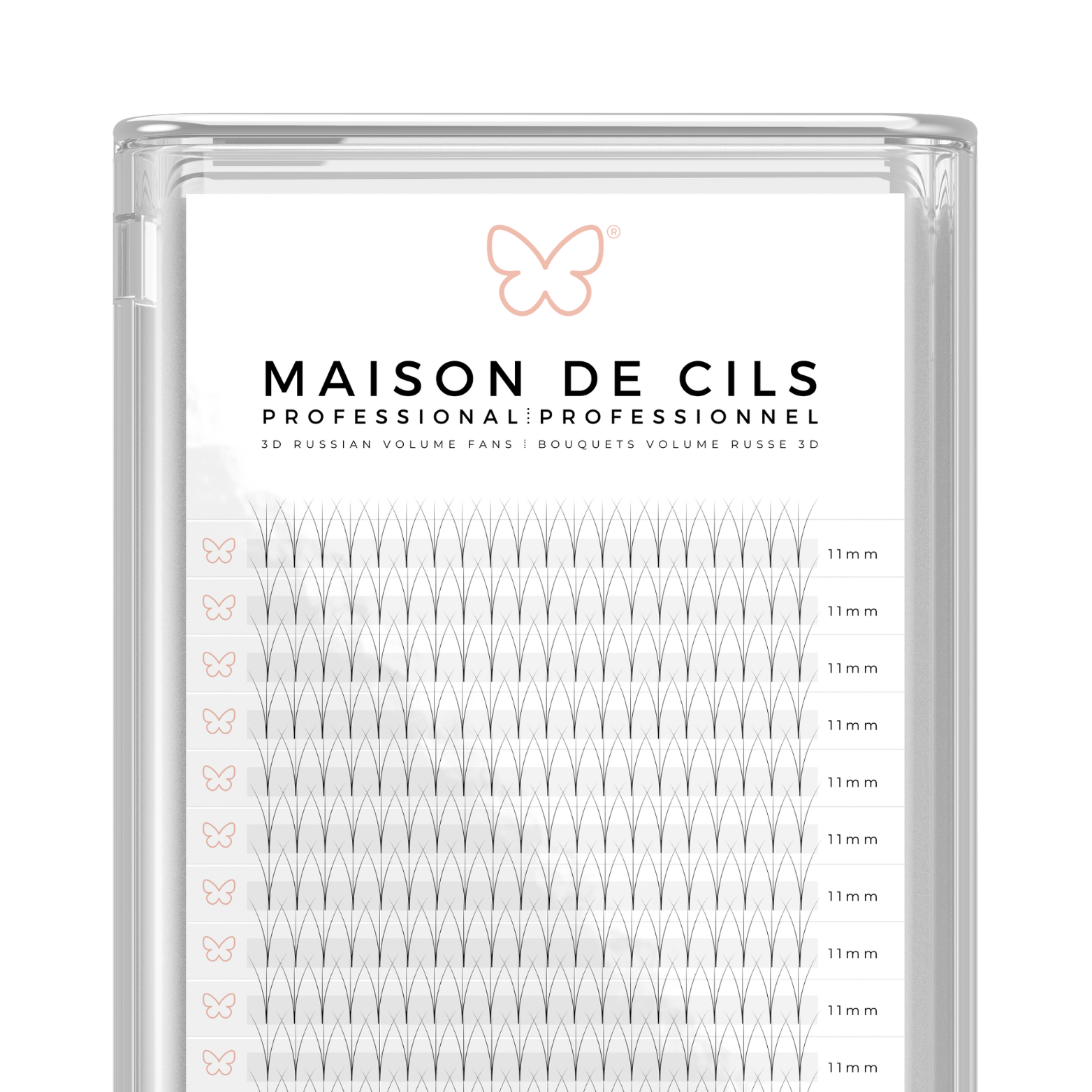 The premade 3D eyelash extension trays are expertly crafted for lash artists seeking consistent volume, speed, & precision. Designed in the Russian volume style, each tray features 3D fans with perfect symmetry and a matte finish for a soft, natural look.